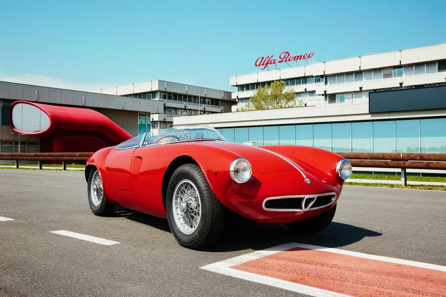 The official Alfa Romeo line-up will also include the 1900 Sport Spider from 1954. It is an extremely rare racing spider - produced as a one-off - equipped with the 4-cylinder twin-cam dry sump "1900" engine, with maximum power boosted to 138hp, enabling it to reach a speed of 220km/h, thanks to a weight of just 880kg and particularly efficient aerodynamics.
