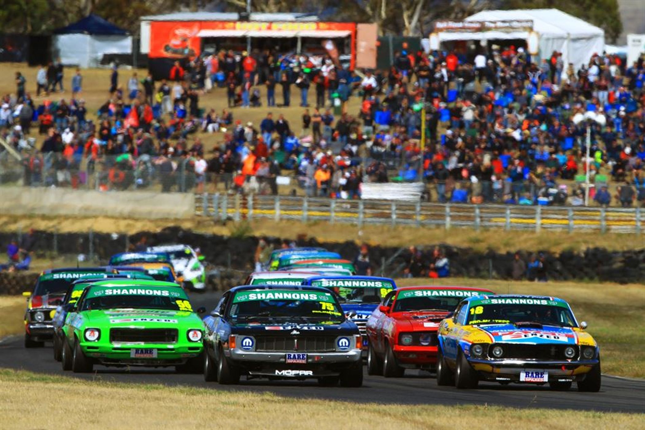 The Dunlop Super Dealers entry once again hit turn one first on the opening lap, however ‘Mustang Sally’ was far from unchallenged as Greg Crick fought tooth and nail to put his Chrysler Charger in front. Crick reduced the margin to within one second during the closing stages; however the Tasmanian was narrowly denied a popular victory in front of his home fans by just three tenths of a second.
