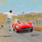 “Johnny von Neumann and myself were the main survivors after the first race was complete because Carroll Shelby, Jack McAfee and Richie Ginther had all dropped out with various mechanical problems. That left von Neumann and myself battling for the lead. Johnny had a new 2.5-litre, 4-cylinder engine in his Ferrari TRC and I had a plain old 500 Testa Rossa with a 2-litre engine.