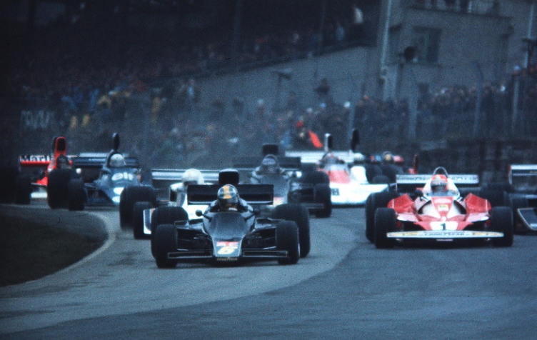 A jump-start from Nilsson, which cost him a time penalty, saw him lead initially, but it was Jones who was the man on the move and it was his Surtees at the head of the pack at the end of the first lap. Scheckter went past the Australian on lap two only to then understeer off and be another to find a solid bank, putting Jones back ahead with Hunt second from Nilsson, Lauda, John Watson’s Penske, Evans and Brambilla, the latter have blasted through to seventh from 15th in just two laps – though then another to been adjudged to have jumped the start and get a one-minute penalty.