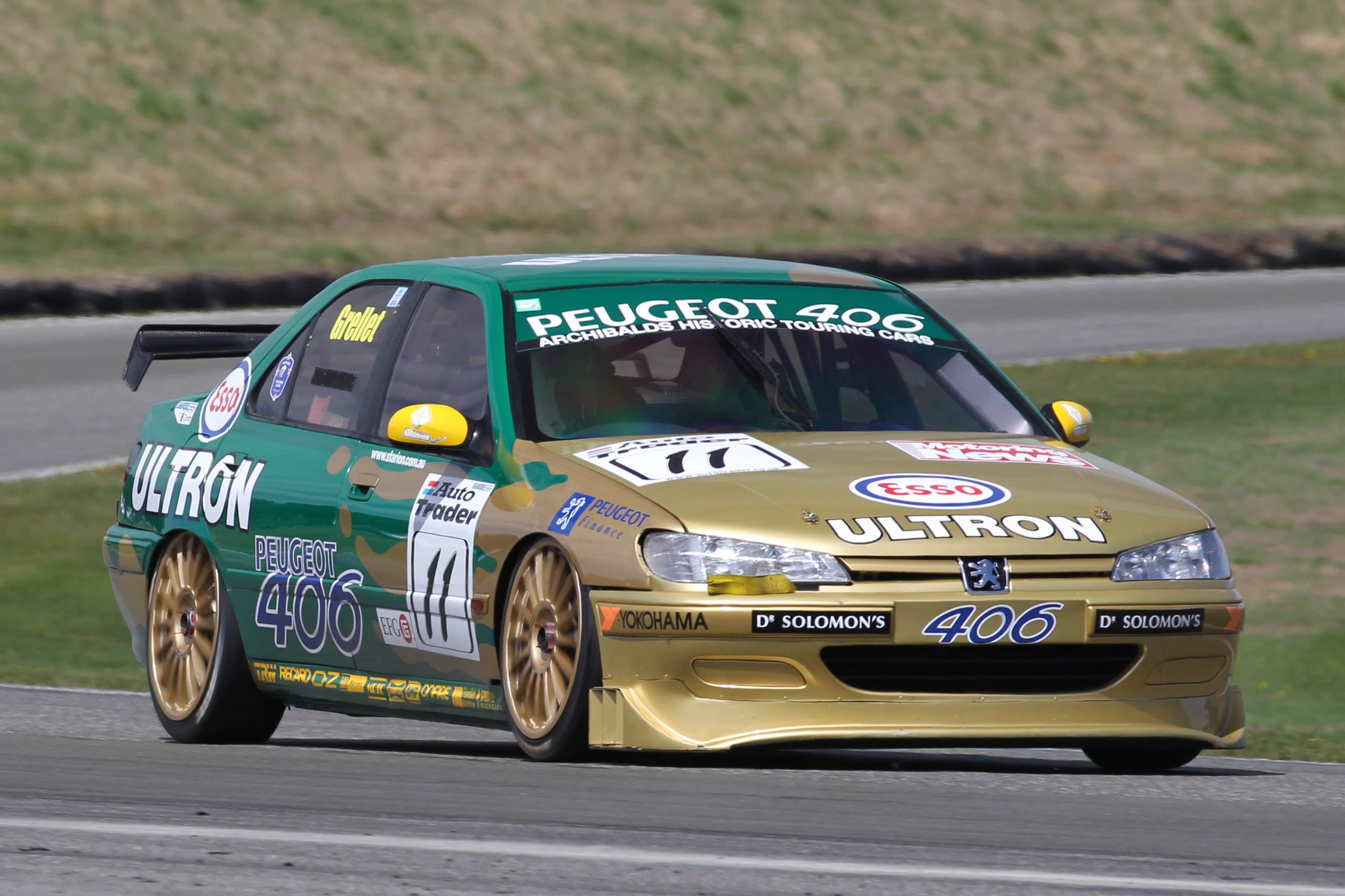 After mssing out on qualifying thanks to a flat battery Stephen Grellet started and finished the race (in 13th) place in the other ex-Paul Radisich car in the field, the ex BTCC Peugeot 406 but was a late dnf in the second.