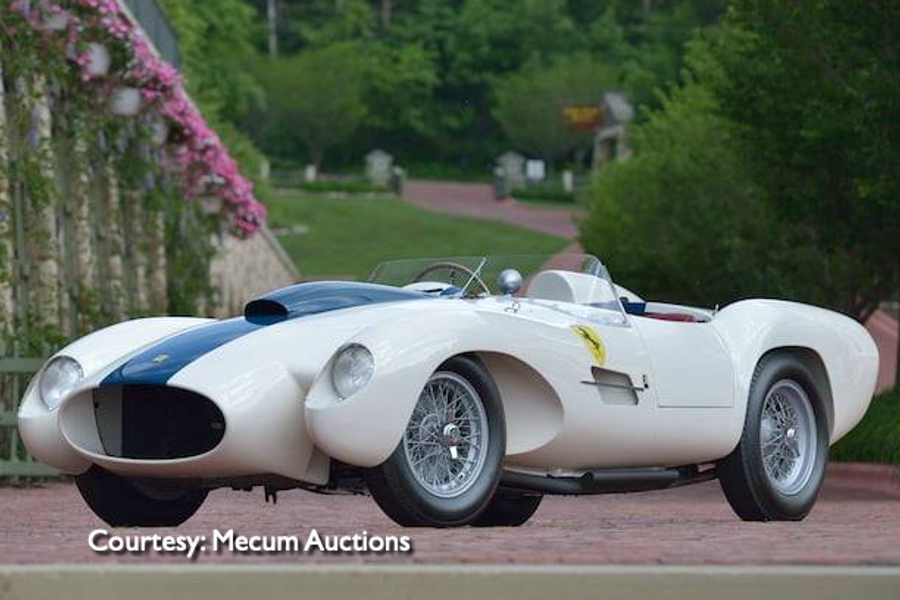 One year ago sales topped 45 million dollars a year ago and they should surpass that in 2019. The star of the Mecum show this year could well be a Ferrari from Dana Mecum’s own collection. A rare 1954/59 0432M in white and blue NART livery has created a lot of pre-event buzz (see above). The car was delivered to the original owner Luigi Piotti as a 250 Monza PF Spyder. In June of ’54 the car won its inaugural race, the 12 Hours of Hyere, driven by legendary Maurice Trintignant. The car raced the rest of the ’54 and ’55 garnering another win along with a second and a third place finish in six outings.