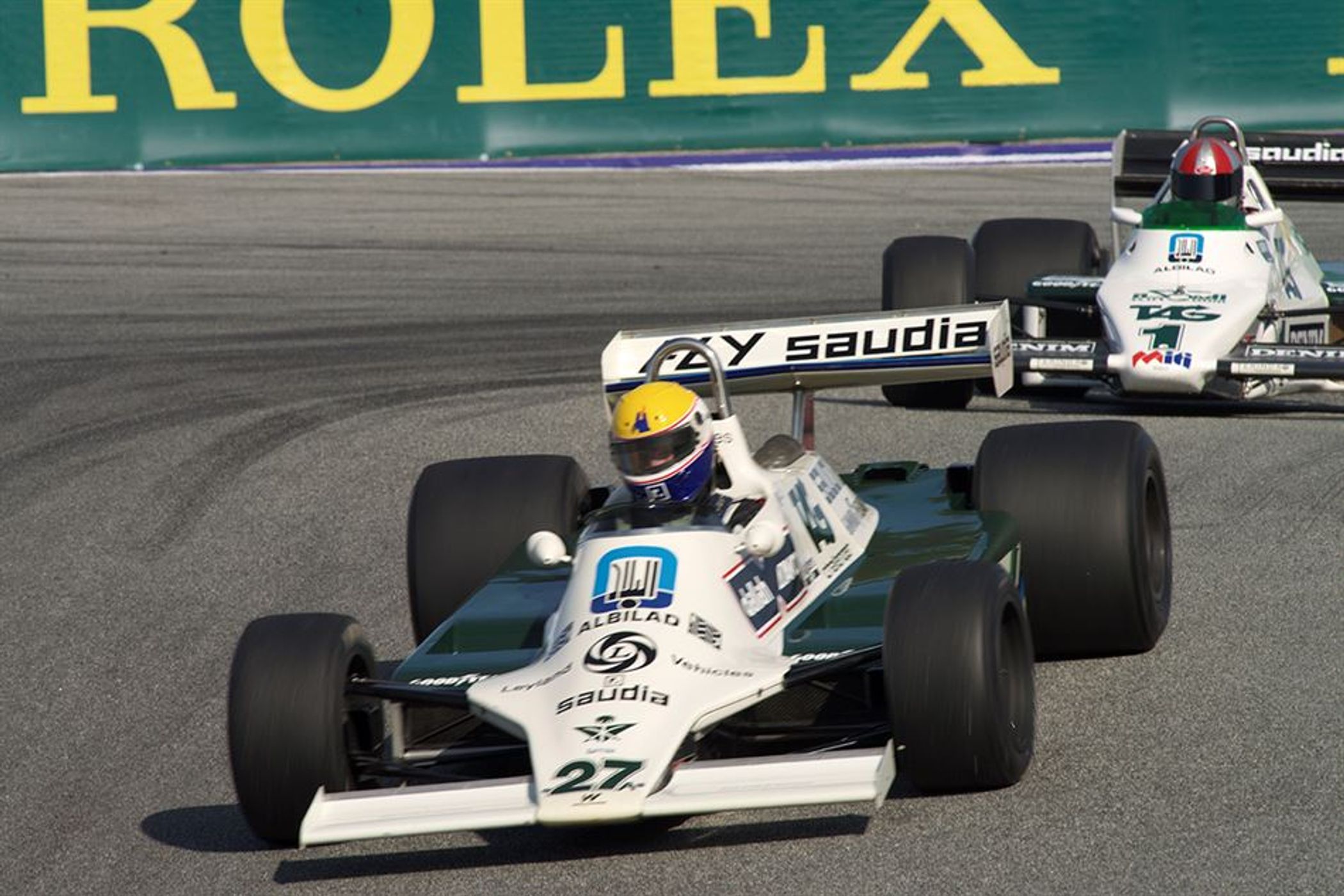 Nearburg topped qualifying in his ex-Alan Jones Williams FW07, with the chasing pack led by four-time Motorcycle Grand Prix champion Eddie Lawson in his Wolf WR4. Masters newcomer Erich Joiner put his ex-Keke Rosberg Williams FW08C in third slot, while former Larrousse and Pacific Formula 1 driver Jean-Denis Deletraz was the best of the European visitors in Fred Fatien’s Surtees TS19 followed by Andrew Beaumont (Lotus 76) and James Hagan (Tyrrell 011).