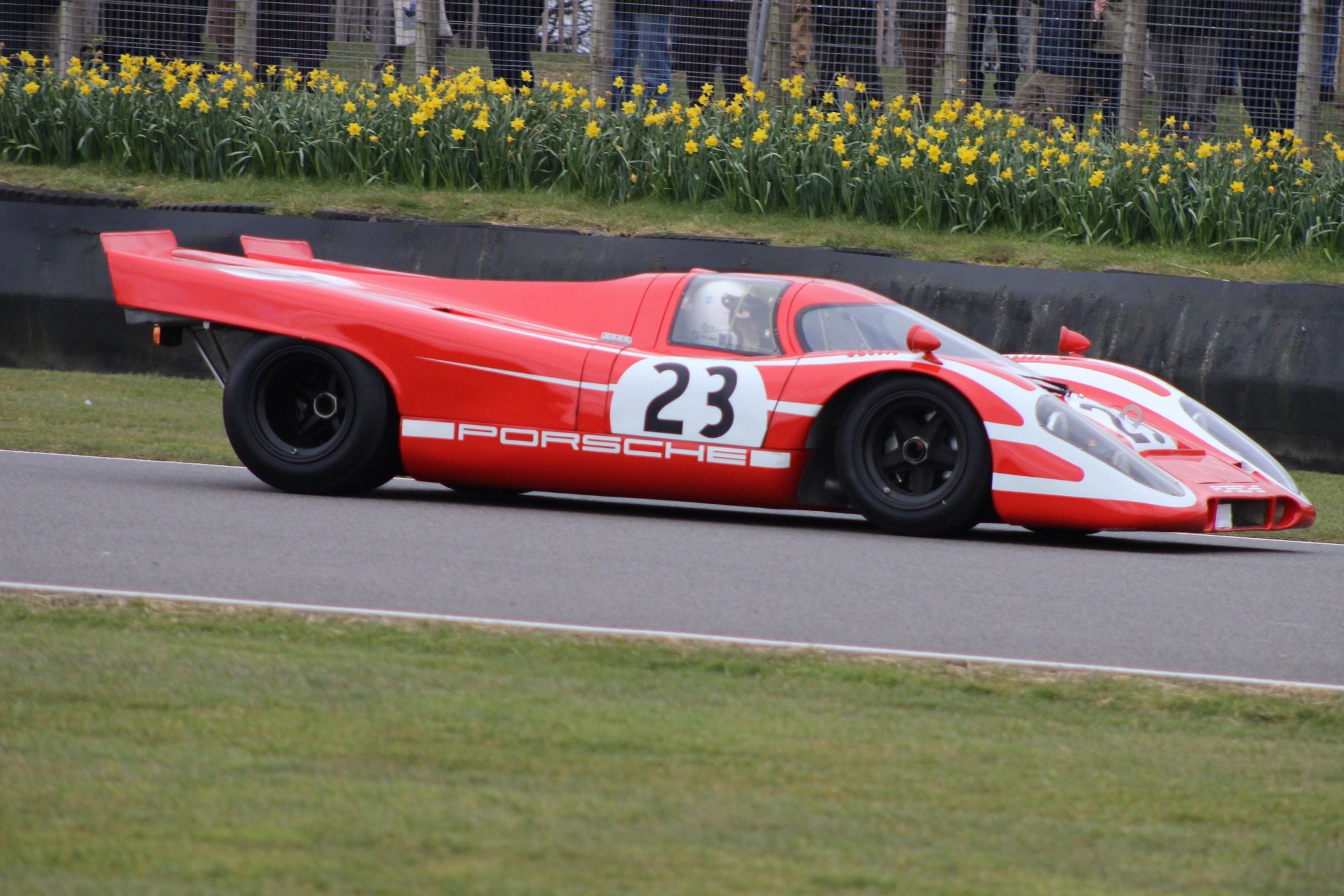 The very first car, chassis #001, will lead out the parade around the Goodwood Motor Circuit. Chassis #001 was originally used as the test model, but has undergone extensive restoration at the Porsche Museum over the winter. Sharing driving duties at the Members’ Meeting will be original driver, and winner of the 1970 Le Mans 24 Hours, Richard Attwood and 2015 World Sportscar Champion with Porsche, Mark Webber.