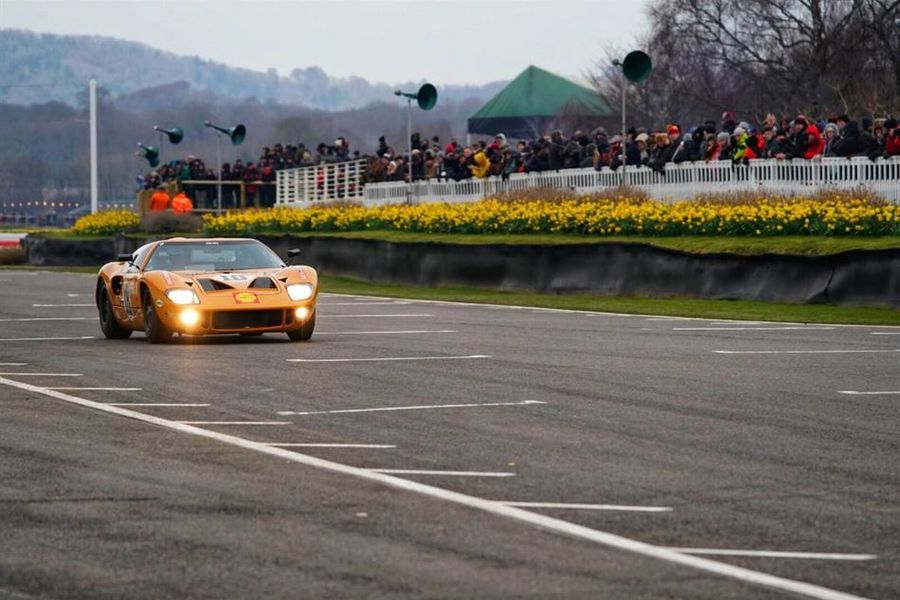 David Hart drove an immaculate race to win the 11-lap Gurney Cup race aboard his ex-Willy Mairesse Ford GT40. The Dutchman blasted into an early lead from the outside on the front row, his son Olivier looking like a threat in the family Shelby Daytona Cobra until he had an off-road excursion early on. It was left to Andrew Smith in his grey Daytona Cobra to challenge for outright honours, but he never quite got on top of the gold GT40 and was three seconds in arrears by the time the chequered flag fell after 15 minutes of thrilling action. Man of the race, however, was Olivier Hart whose breathtaking recovery drive saw him steering his car at ever more extreme angles as he attempted to claw back time. He was incisive in traffic and made up several places to finish a brilliant third.