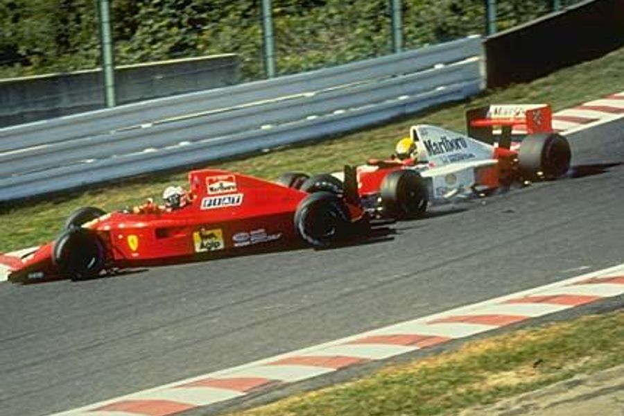 Just as Senna feared, Prost made the better getaway in his Ferrari 641/2, Senna to the inside, the McLaren touching the rear of the Ferrari as it came across to turn into the first corner and the two cars lancing off into the Suzuka gravel trap. Senna felt Prost had ‘closed the door’ on him, Prost felt Senna had risked injury for both of them with his actions.