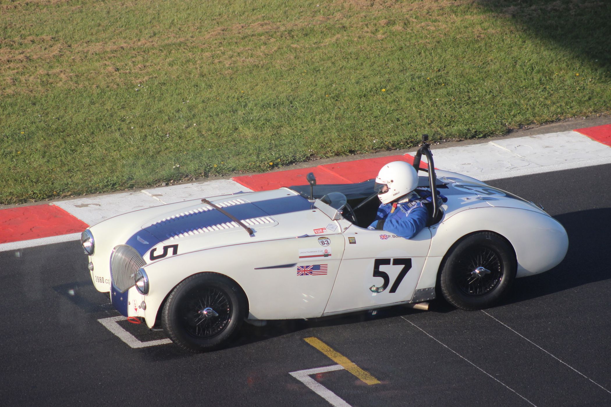 The first race was stopped after eight laps with a Jaguar stranded at the Old Hairpin after loosing a wheel, Ratcliff heading Haynes at that point, John Young heading the Jaguar challenge in third ahead of the MGA of Stuart Dickinson.