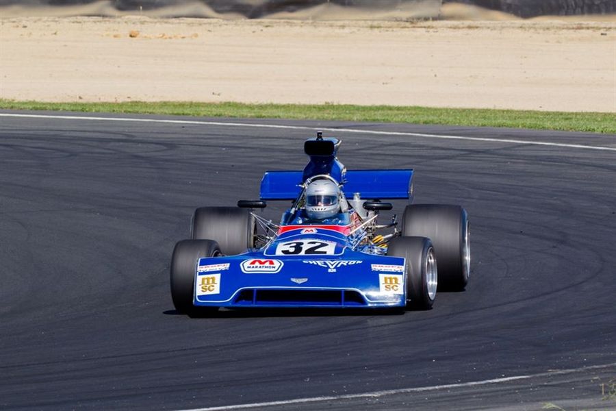 Gethin’s win in 1973 was the only year it went wrong for the F1 brigade. European F5000 champion in McLarens in its first two seasons, ’69 and ’70, the Englishman struck a monster blow for the mainly small-block Chevrolet-powered brigade when he beat the three-litre contingent to take the chequered flag in American entrant Doug Shierson’s Marathon Oil Chevron B24. 44 years later, the same car takes on the F1s again this weekend, this time in the hands of current owner, Englishman Greg Thornton.