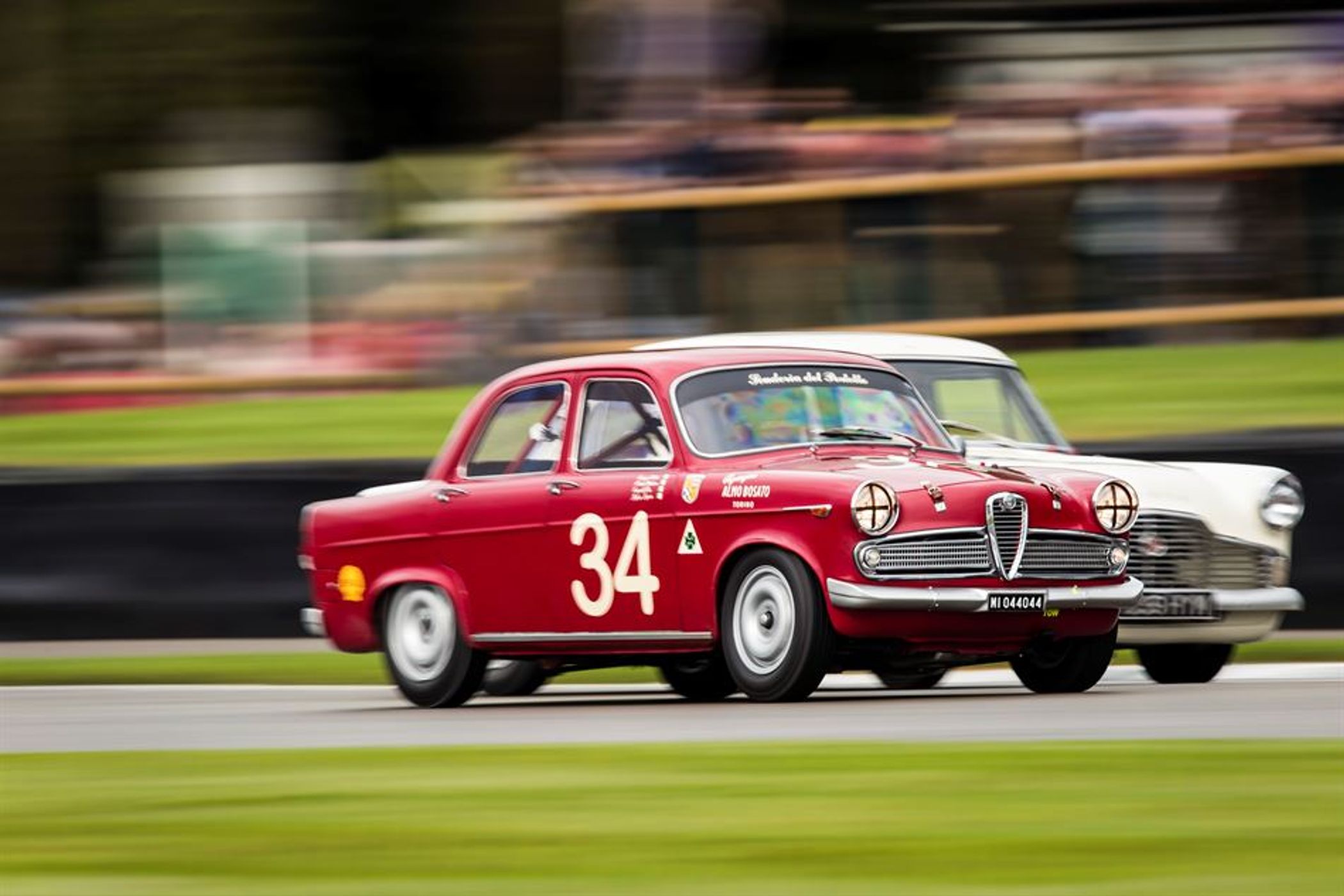 Richard Meaden emerged victorious in the second installment of the St. Mary’s Trophy following a race-long battle with touring car veteran Mike Jordan. Richard Shaw took the early lead, only to spin onto the grass on the approach to St. Mary’s. The race descended into a two-car battle between Meaden’s Alfa Romeo Giulietta Ti and Jordan’s improbably quick Austin A40 thereafter.